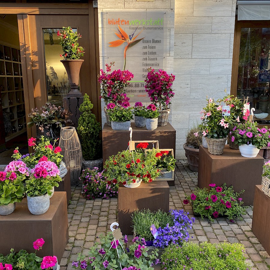 Ob in kräftigen Farben oder in dezenten Pastelltönen – bunte Blumen sorgen für Freude und bringen Wohlfühlatmosphäre in die eigenen vier Wände – oder in Ihre Büroräume. Fantasievoll kombinierte Sträuße und Arrangements begeistern zu jeder Jahreszeit. In der Blütenwerkstatt entstehen farbenfrohe Kreationen, die sich als Mitbringsel ebenso eignen, wie als Dekoration für Ihren besonderen Anlass.